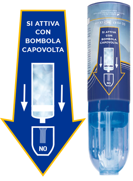 L’azione combinata sfrutta la forza di gravità aggiungendo la pressione aerosol generata all’interno del dispositivo.